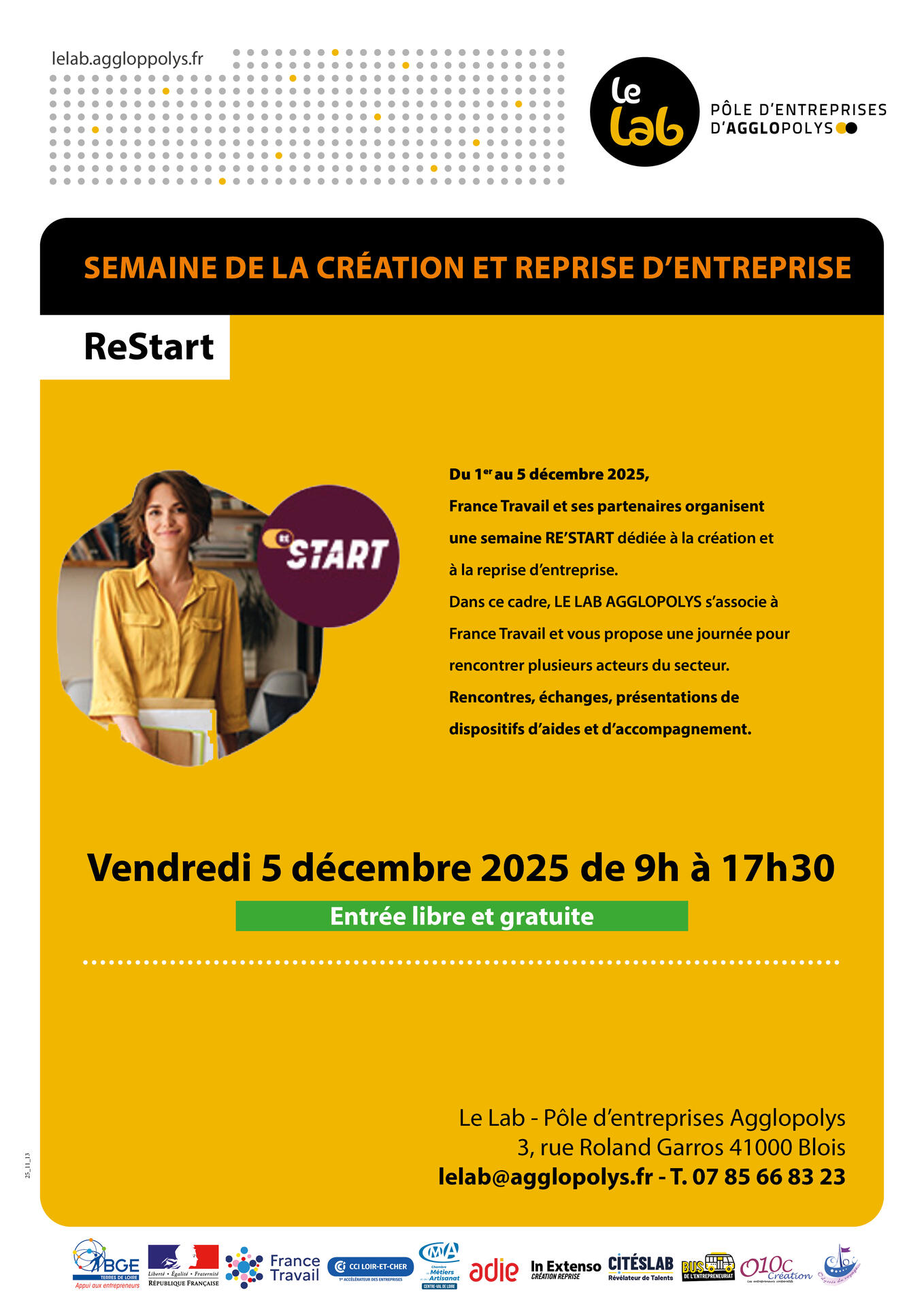 Du 1er au 5 décembre 2025, France Travail et ses partenaires organisent une semaine RE’START dédiée à la création et à la reprise d’entreprise.